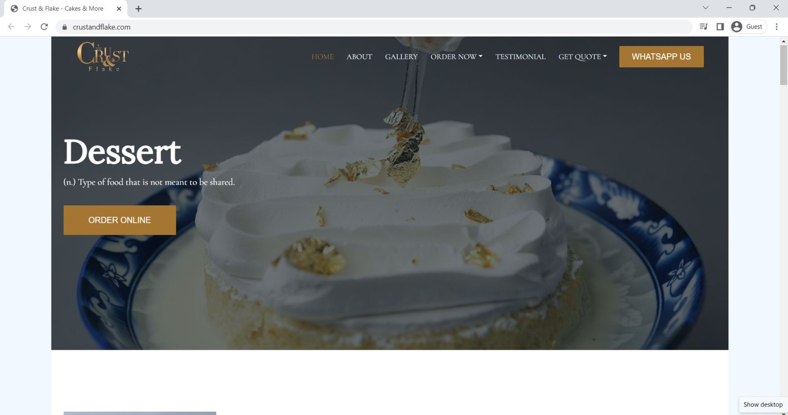 Crust & Flake is a delightful online cake shop that offers a wide range of delectable cakes for all occasions. From classic flavors like chocolate and vanilla to unique ones like lavender and honey, Crust & Flake has something for everyone. Our cakes are made using only the finest ingredients and are baked fresh to order, ensuring that every bite is a true indulgence.
